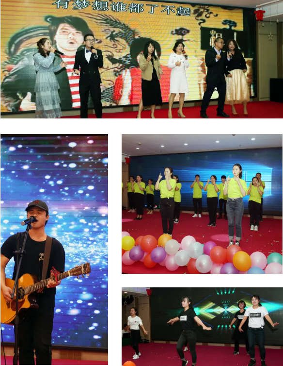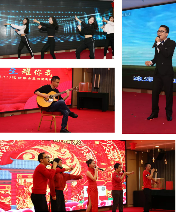 年會(huì)現(xiàn)場,其樂融融,員工們各展所長,紛紛呈現(xiàn)出精彩的表演,詼諧勵(lì)志的四小天鵝、惟妙惟肖的大咖模仿秀、溫暖深情的獨(dú)唱、美妙動(dòng)聽的吉他彈奏、動(dòng)感十足的舞蹈、祝福滿滿的手語舞、幽默搞笑的三句半、創(chuàng)意改編合唱等,通過節(jié)目紛紛表達(dá)出對(duì)同事、公司的樸實(shí)情感及對(duì)美好未來的祝福。